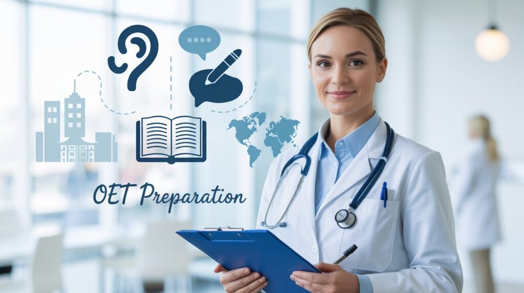OET (Occupational English Test) is a language proficiency exam for healthcare professionals aiming to work or study in English-speaking countries. It evaluates listening, reading, writing, and speaking in real medical contexts. Recognized in countries like Australia, the UK, and New Zealand, OET is essential for nurses, doctors, and other medical professionals. FlyAustria Language Academy offers expert coaching to help you succeed with confidence.